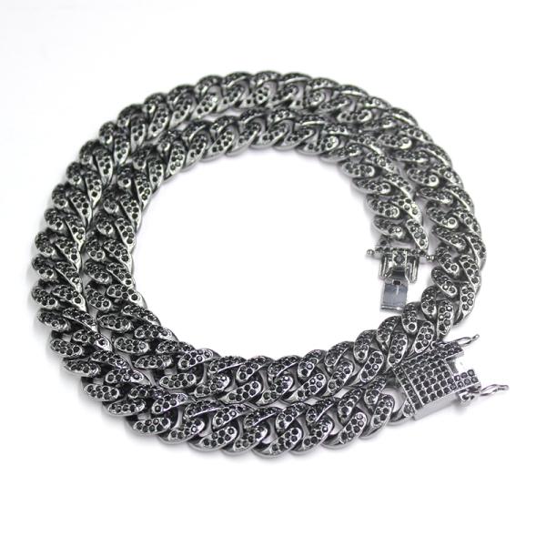 Hot Sale 13.5mm Gunmetal Cuban Chain Necklace For Men Women Hip Hop Rapper Necklace Iced Out Bling Rhinestones Jewelry Images |